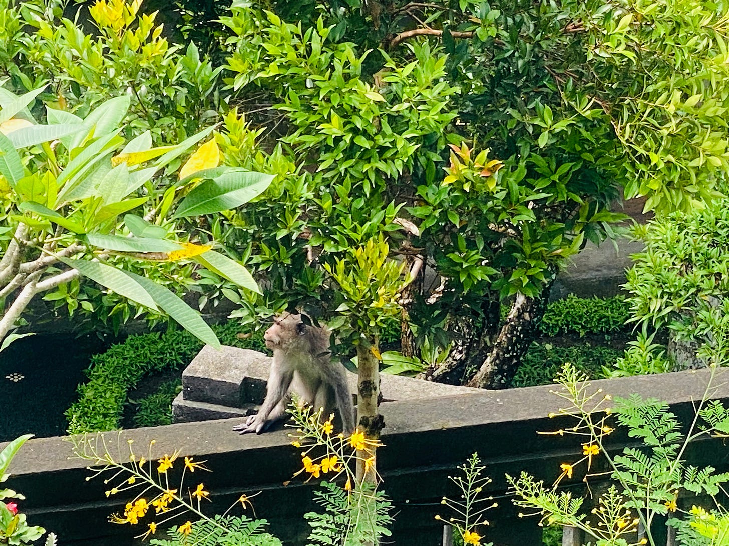 Durante um almoço no restaurante Wayans, um homem árabe puxou conversa e, em poucos minutos, ofereceu carona para o hotel, convite para jantar e pedido de telefone. Recusei com três respostas claras, ditas com a serenidade de quem não precisa transformar cada encontro em possibilidade. Diferente do livro, Bali não era cenário para romance na minha história. Era espaço de descanso, de observação e de interação despreocupada com os macacos que circulam pelos templos, pelas ruas e pela varanda do hotel.